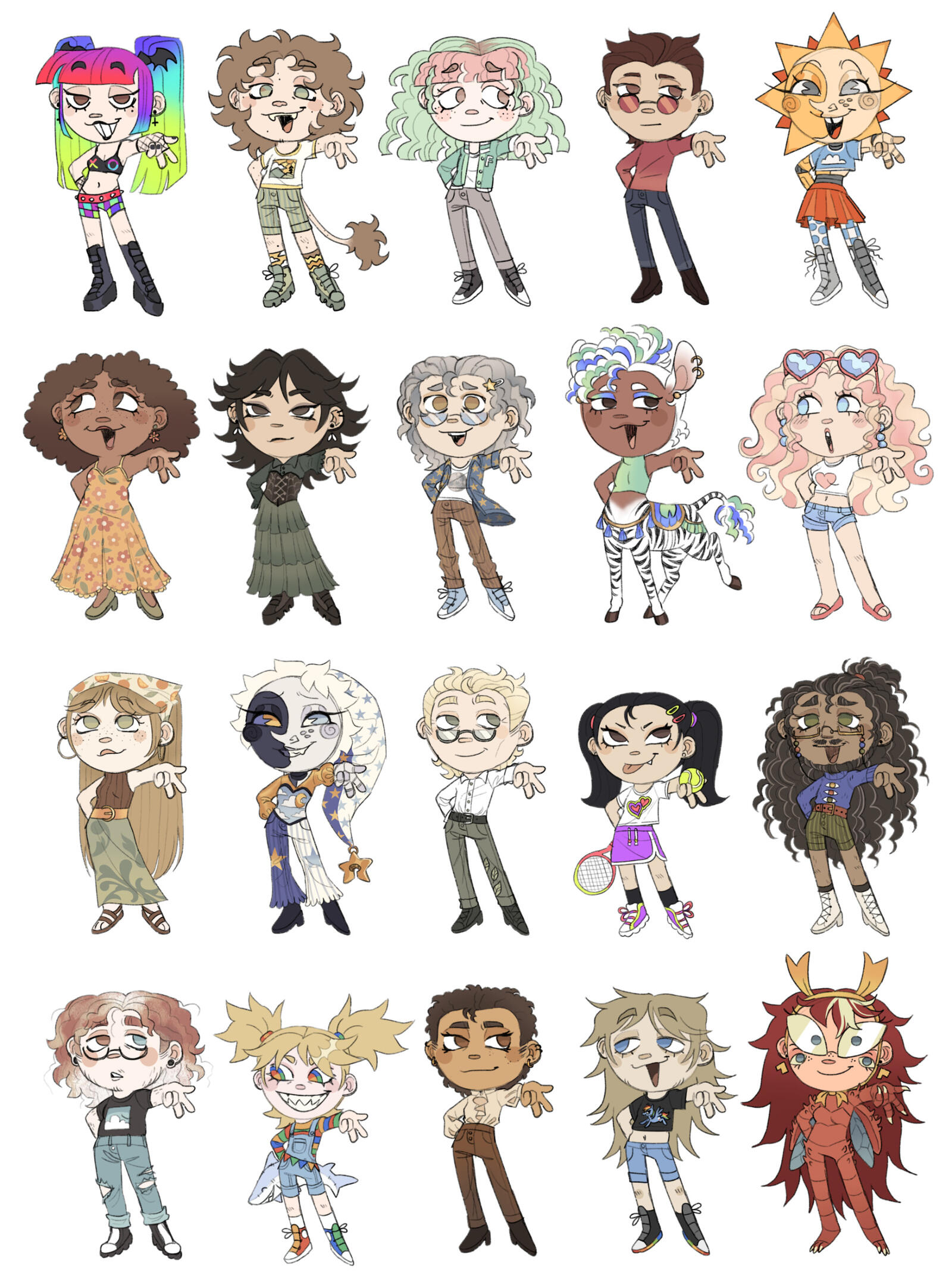 a fully digital illustration with clean lines and extra detail. Lineart brush used is procreate's narinder pencil.(note: all characters shown except the 4th artwork are designed by me. 3rd and 11th are based on existing characters.)